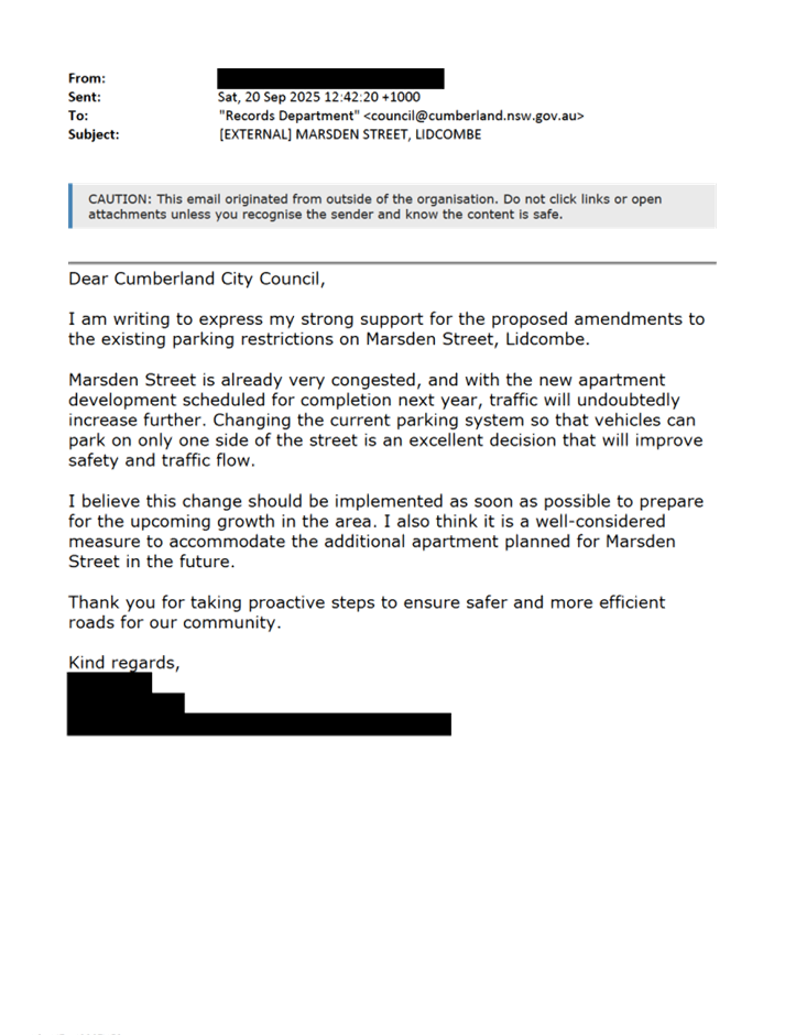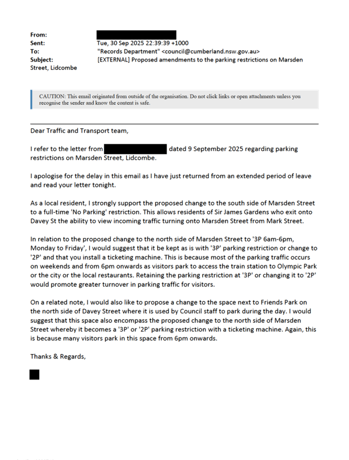 CLTF-25-212 MARSDEN STREET, LIDCOMBE – PROPOSED AMENDMENTS TO EXISTING PARKING RESTRICTIONS