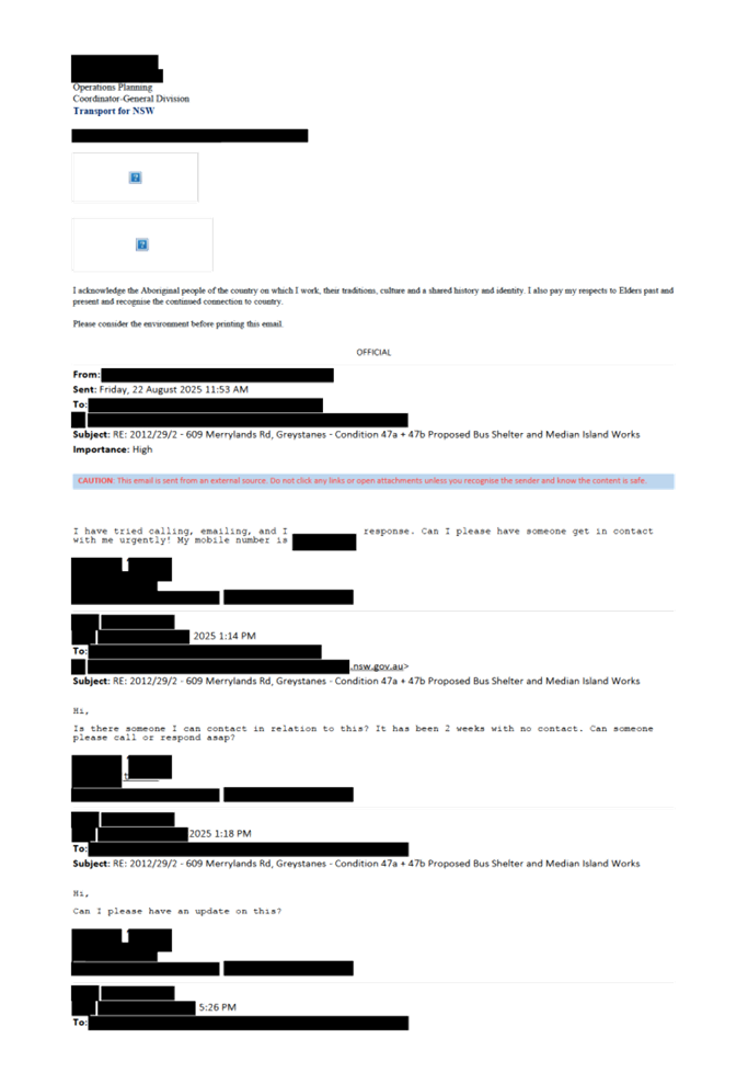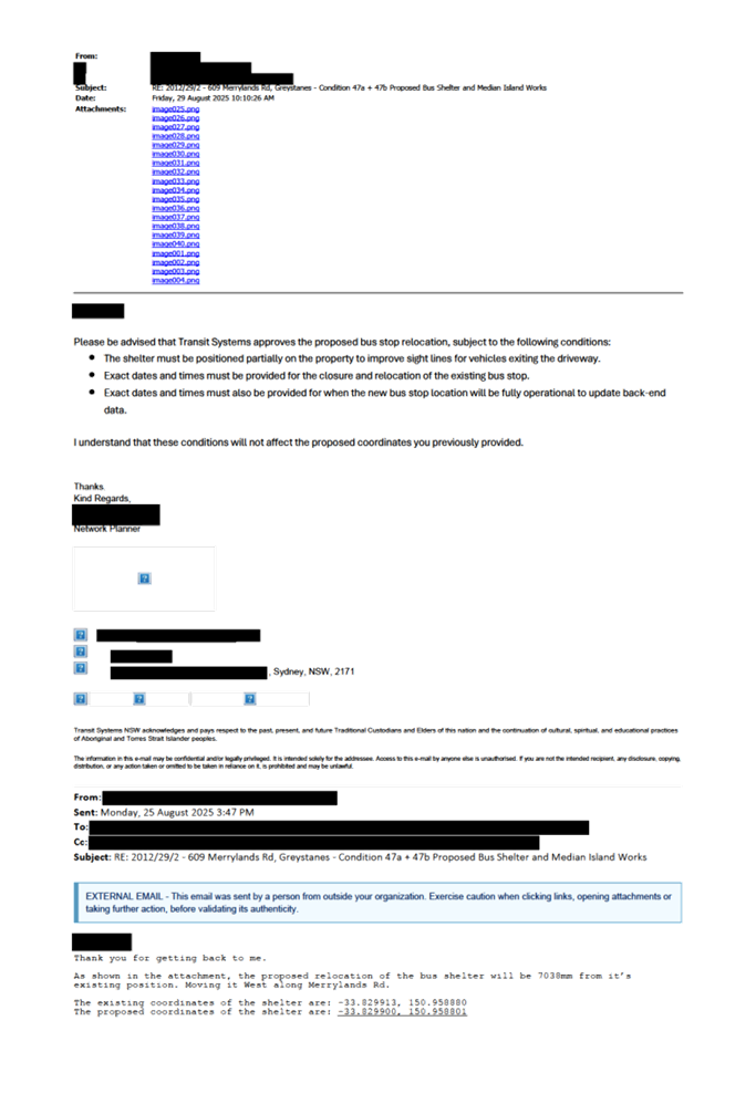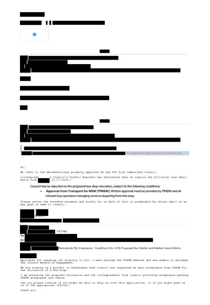 CLTF-25-213 MERRYLANDS ROAD, GREYSTANES – RELOCATION OF THE EXISTING BUS STOP