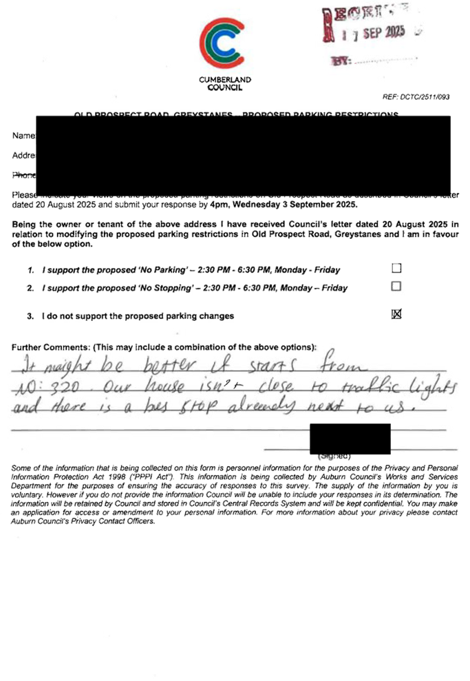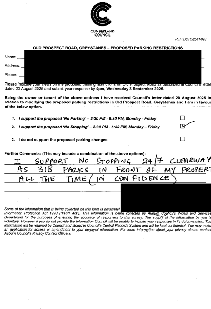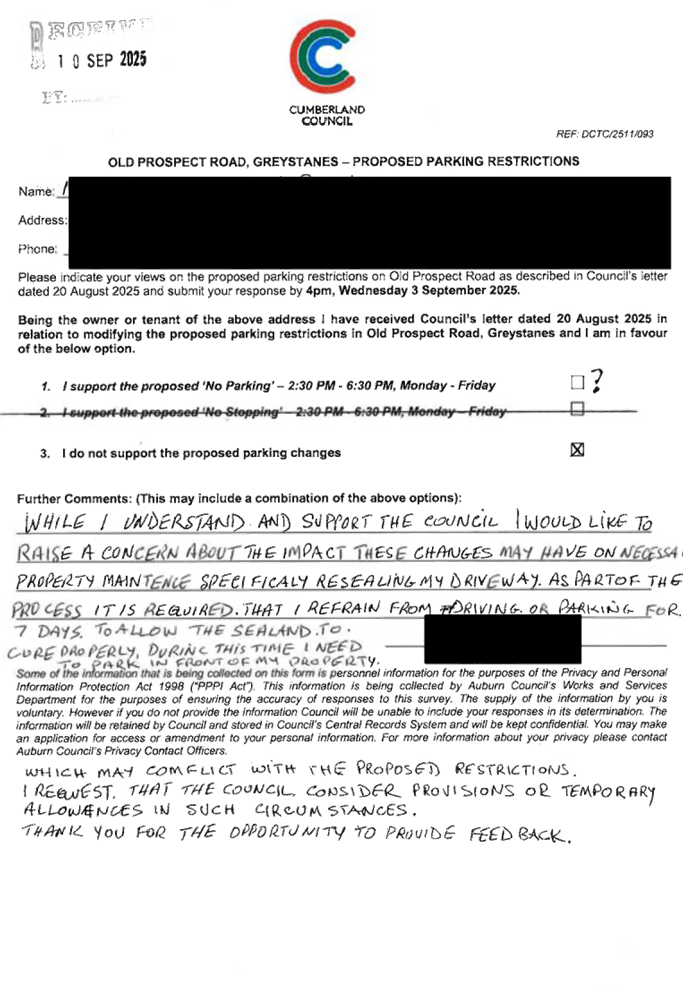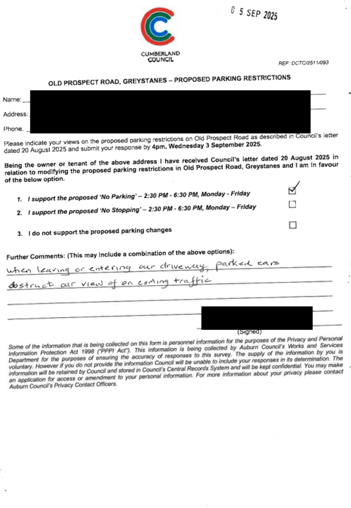 CLTF-25-215 OLD PROSPECT ROAD, GREYSTANES – PROPOSED 'NO PARKING' RESTRICTIONS