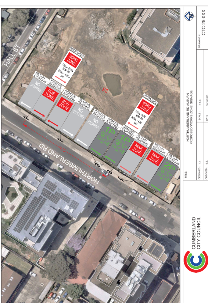 Plan – Northumberland Road, Auburn – Proposed Temporary ‘Works Zone’ signage