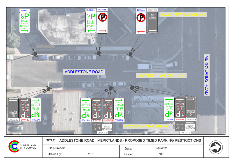 Plan – Addlestone Road, Merrylands – Proposed Timed Parking Restrictions