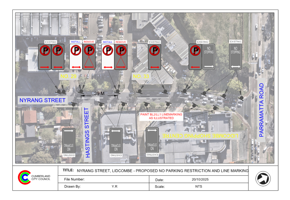 Plan – Nyrang Street, Lidcombe – Proposed ‘No Parking’ Restriction and Line Marking
