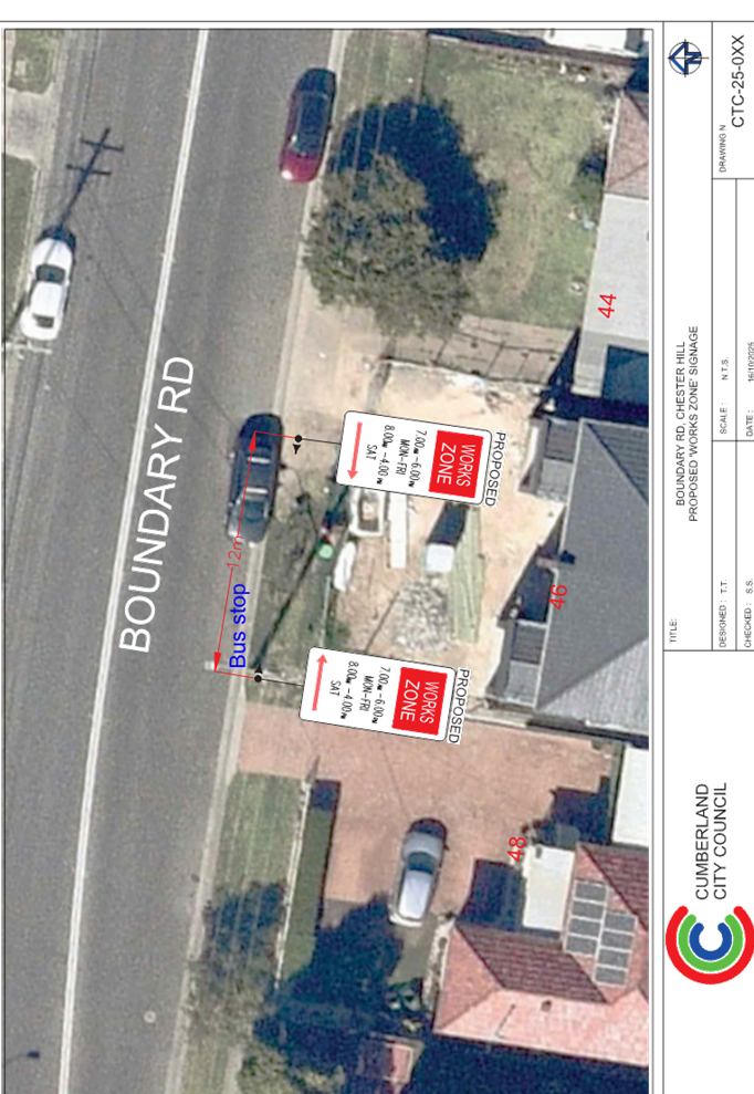 Plan – Boundary Road, Chester Hill – Proposed Temporary ‘Works Zone’ signage