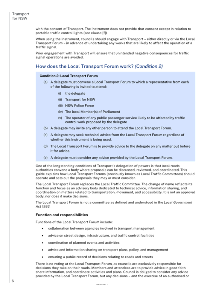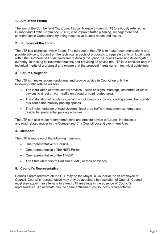 CLTF-25-224 ‘TERMS OF REFERENCE’ FOR CUMBERLAND LOCAL TRANSPORT FORUM UNDER NEW INSTRUMENT AND DELEGATIONS ON PRESCRIBED TRAFFIC CONTROL DEVICES AND REGULATION OF TRAFFIC FROM TRANSPORT FOR NSW