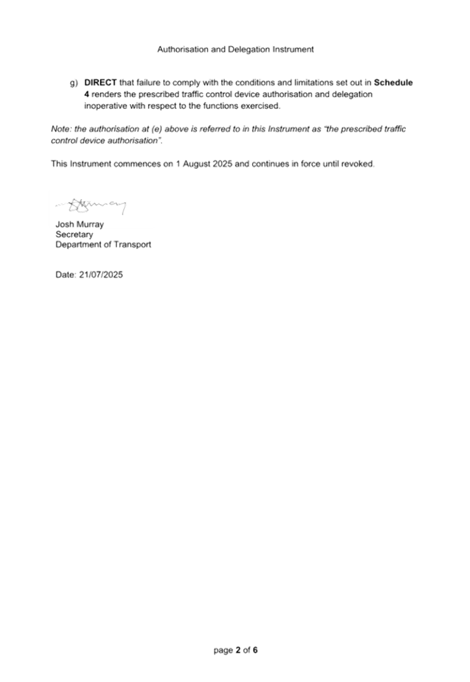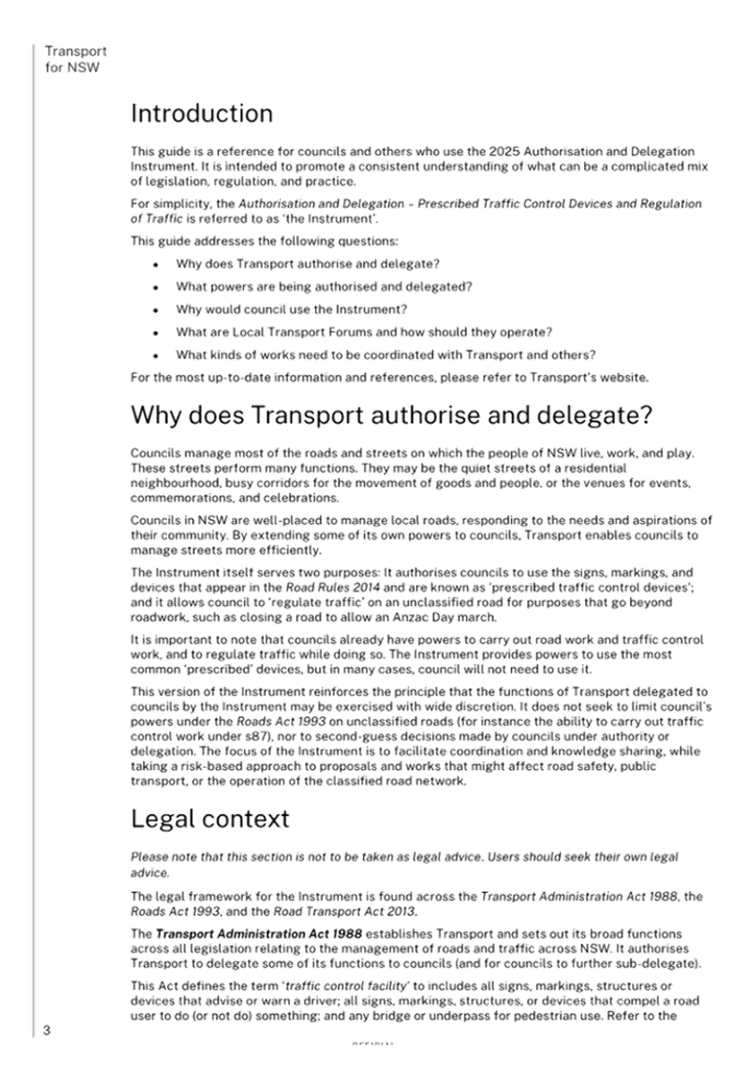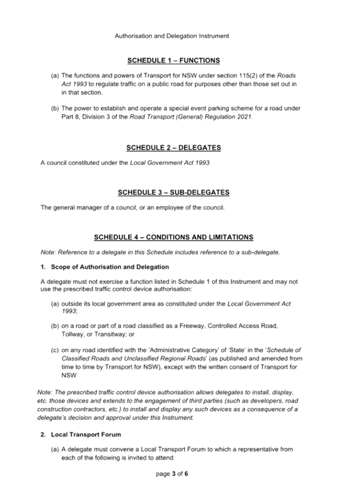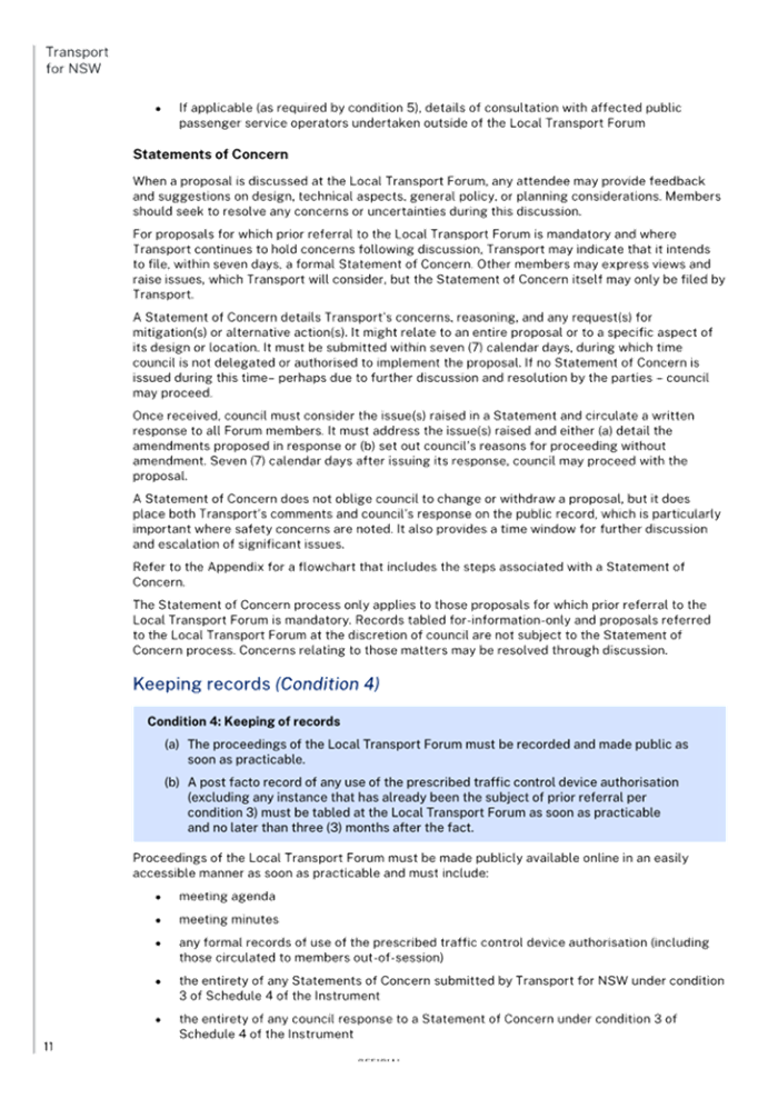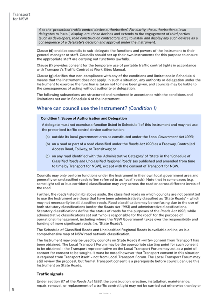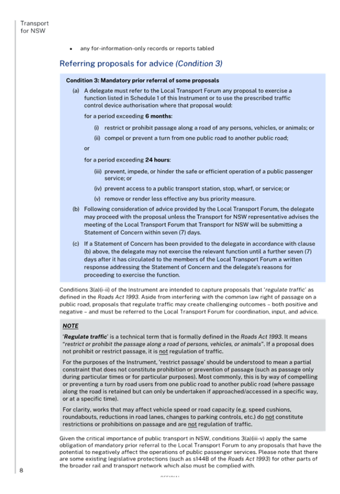 Previous Report – New Instrument and delegations on prescribed traffic control devices and regulation of traffic to councils from Transport for NSW