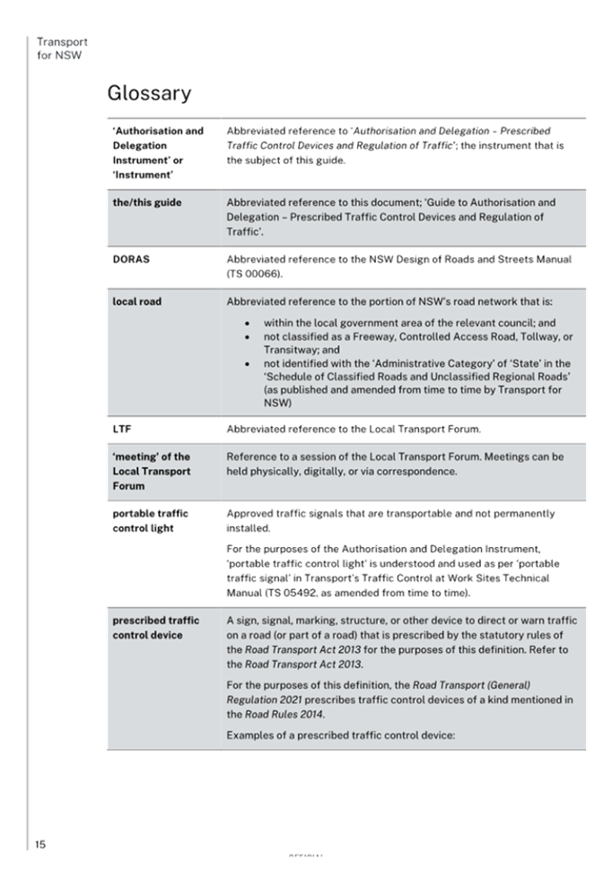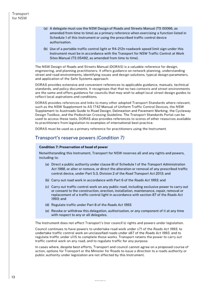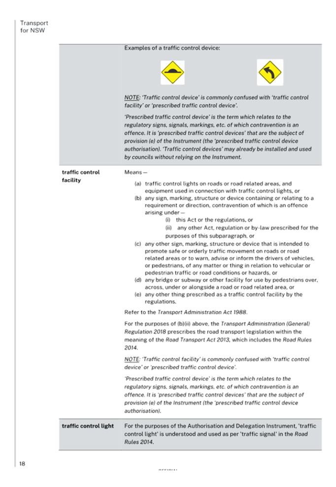 Attachment 2 Previous Report – New Instrument and delegations on prescribed traffic control devices and regulation of traffic to councils from Transport for NSW 313