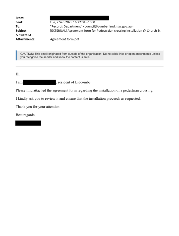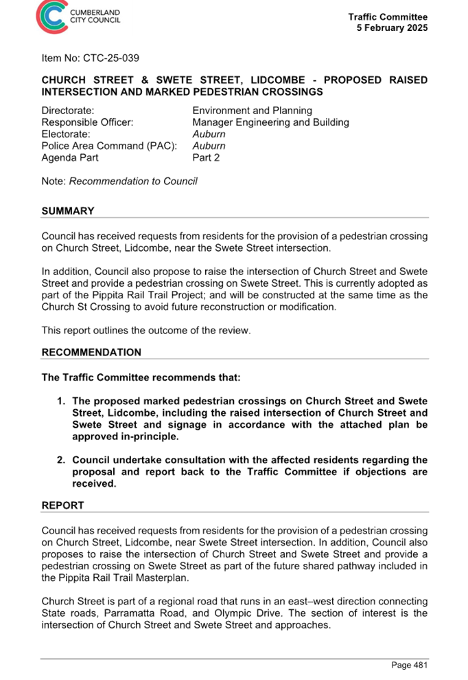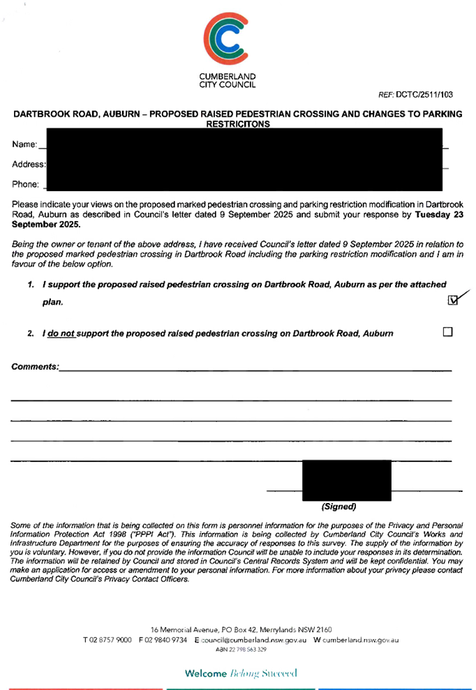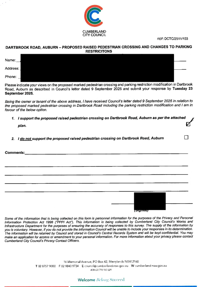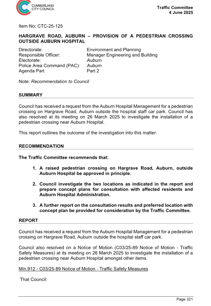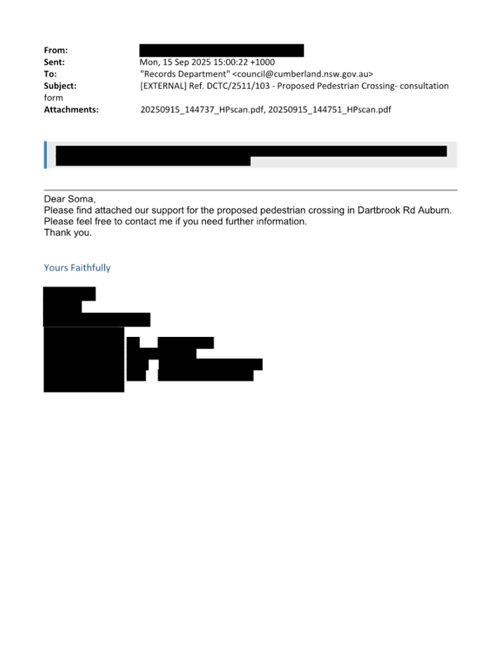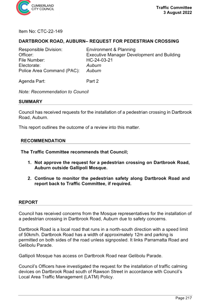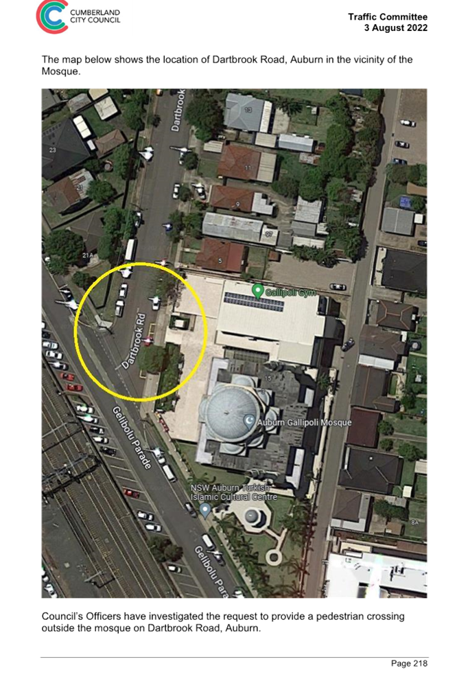 CLTF-25-225 DARTBROOK ROAD, AUBURN – PROVISION OF A PEDESTRIAN CROSSING AT THE INTERSECTION WITH GELIBOLU PARADE