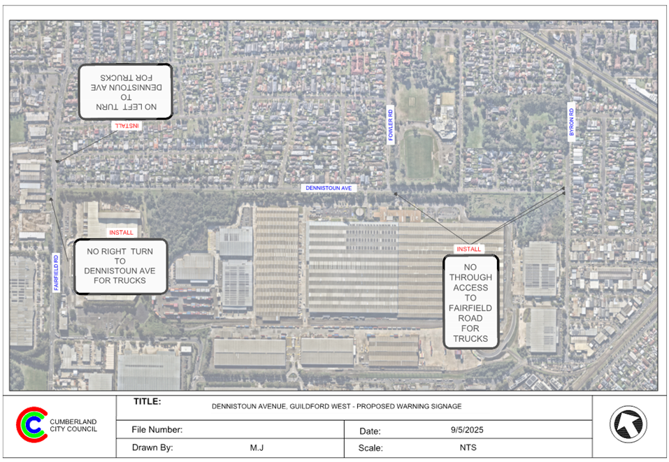 Plan – Dennistoun Avenue, Guildford West – Proposed truck warning signs