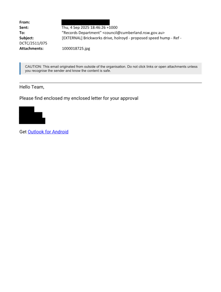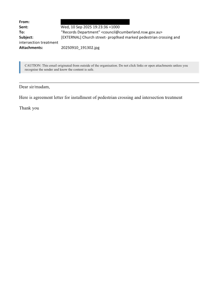 CLTF-25-216 NORTHUMBERLAND ROAD, AUBURN – REQUEST FOR ‘WORKS ZONE’ SIGNAGE