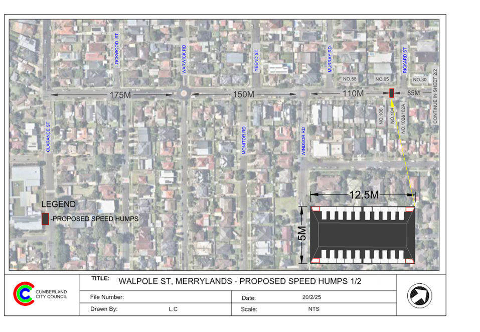 Plan – Walpole Street, Merrylands - Proposed Speed Humps