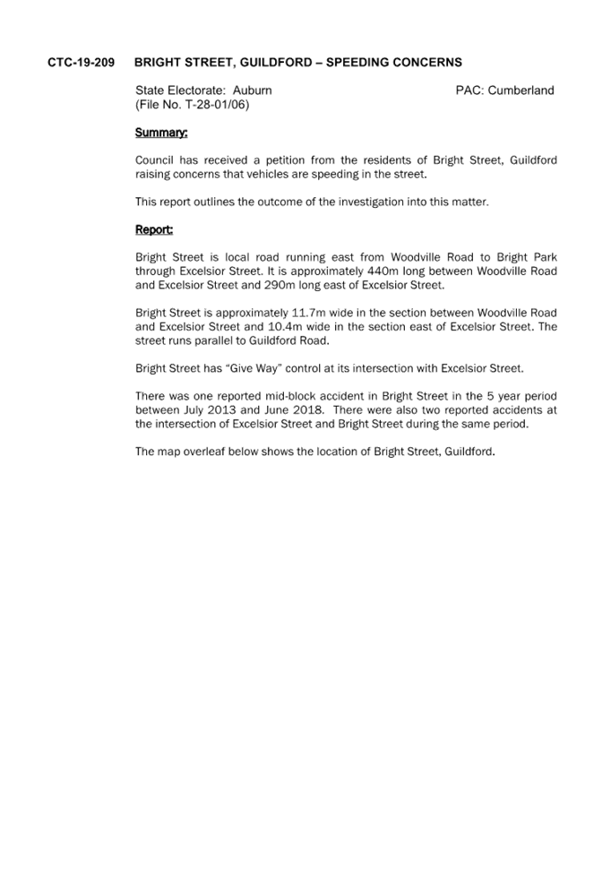 CLTF-25-204 WYNYARD STREET, GUILDFORD – ROAD SAFETY CONCERNS