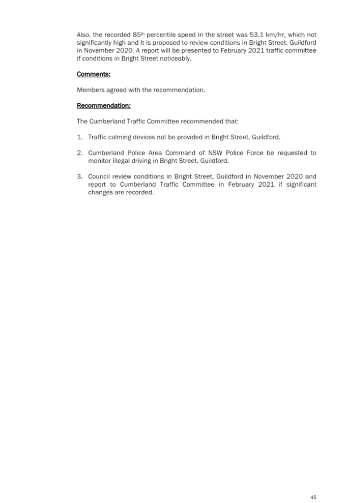 Attachment 1 Plan – Old Prospect Road, Greystanes – Proposed Part-time ‘No Parking’ restriction....................................................................................................... 249
