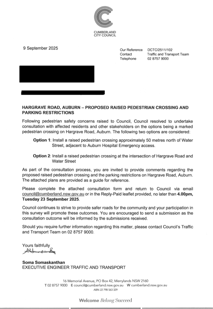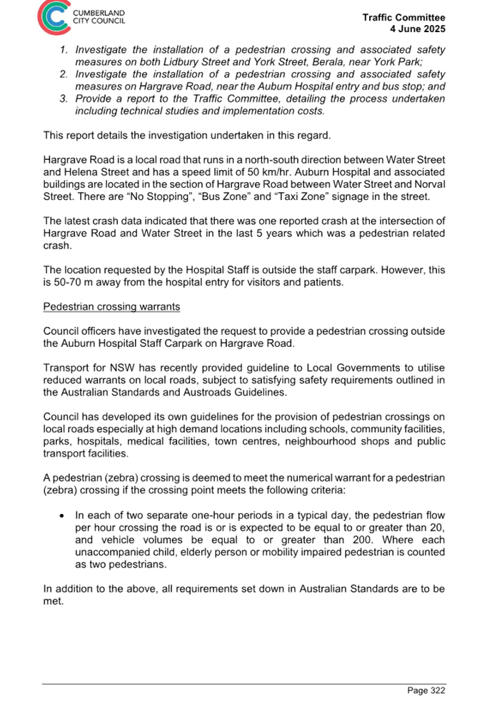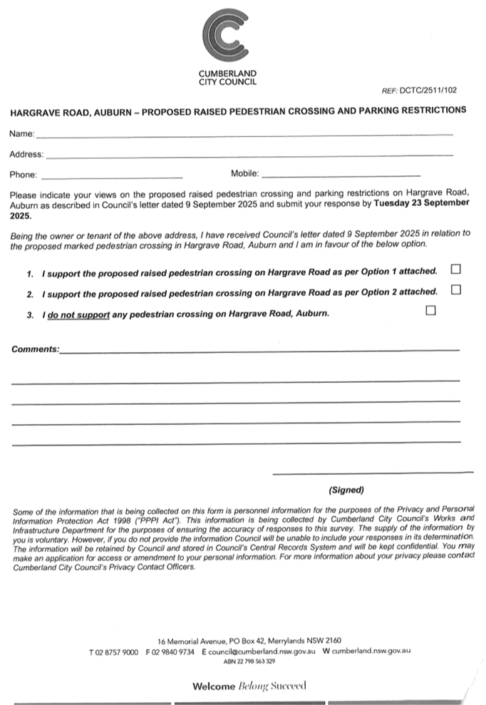 Plan – Hargrave Road, Auburn – Proposed pedestrian crossing