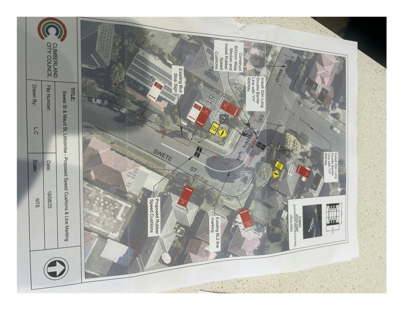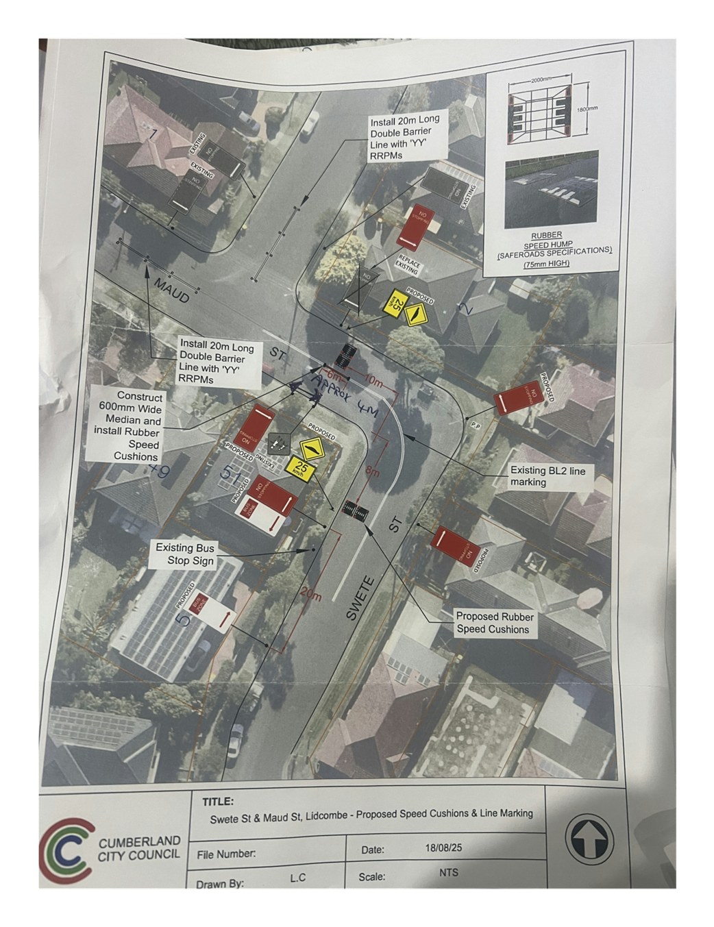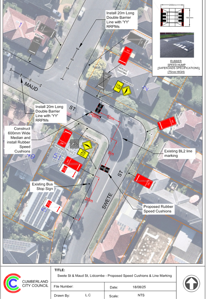Plan – Maud Street and Delhi Street, Lidcombe – Proposed speed humps/cushions